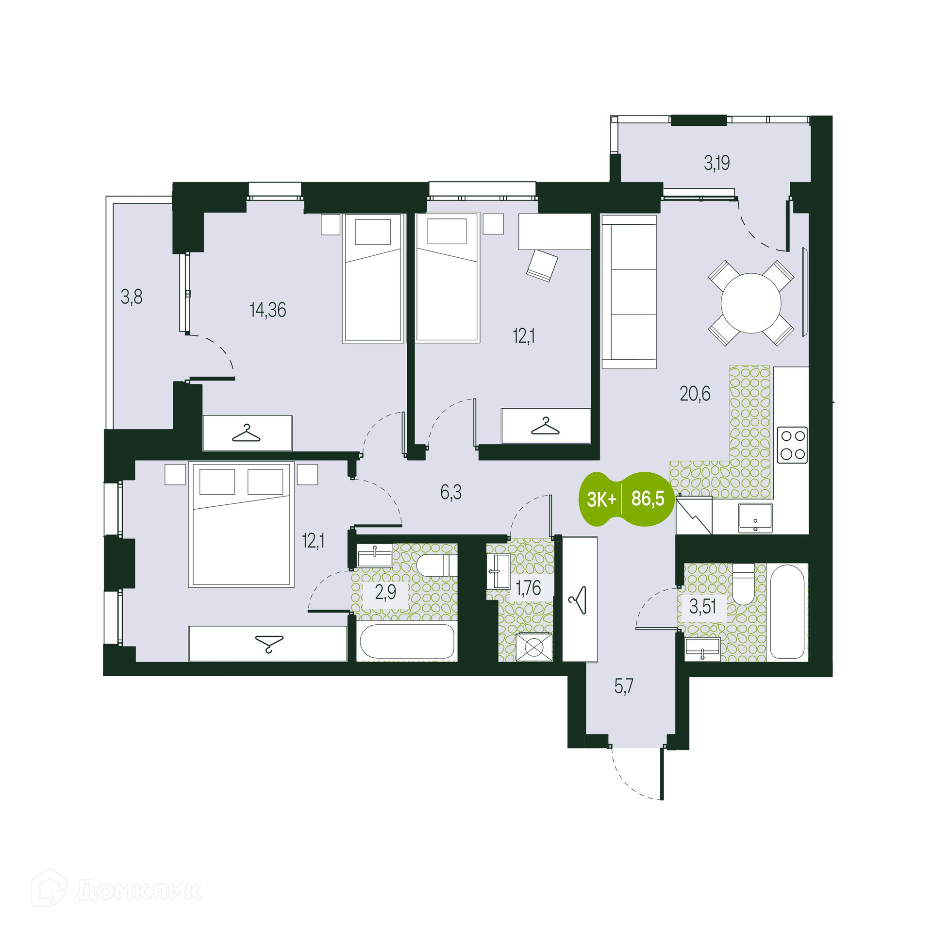 Площади квартир