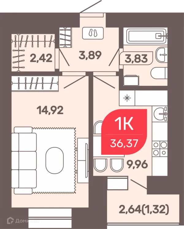 1 комн. квартира в Чите в ипотеку от 76 042 руб/месяц