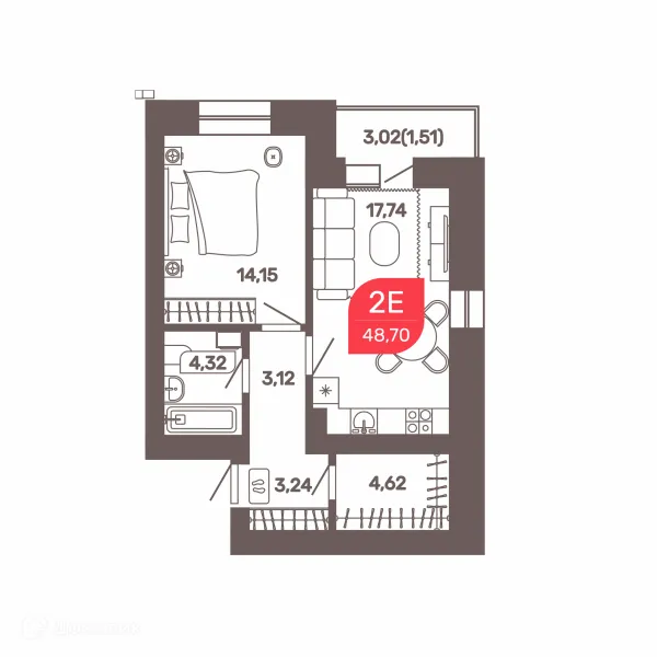 2 комн. квартира в Чите в ипотеку от 44 122 руб/месяц